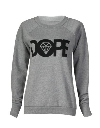 Fast Fashion - Pullover Manches Longues Dope Diamant Impression Molletonné Haut - Femme (S/M = 36/38, Gris)