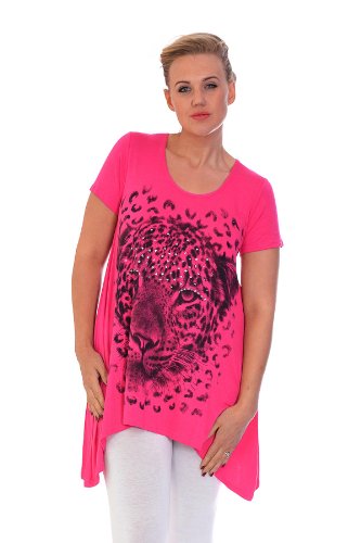 Nouvelle - Tunique Asymétrique, Imprimé Léopard - Couleur : Cerise - Taille : 58