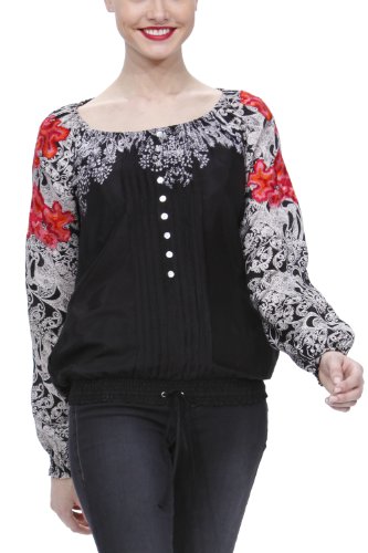 Chemisier pour femme Desigual, modèle Olga. Chemisier noir, Tunique Desigual Yesi Coupe ajustée T-shirt coloré avec des cercles concentriques en soie et