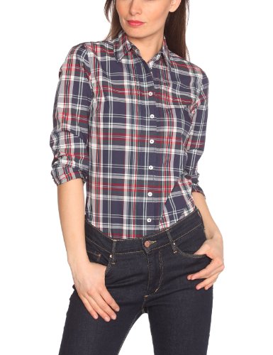Tommy Hilfiger Black Mountain - Chemisier Manches Longues -  Carreaux - Femme - Midnight/Botanical Green - FR:36 (Taille Fabricant :34EU/4US)